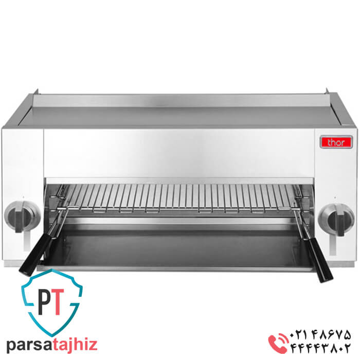 سالامندر گازی فست فود برند تور که به صورت تابشی عمل می نماید به کاربر این امکان را می دهد تا در مدت زمانی کوتاه و کیفیتی بالا نان تست ساندویچ های گوشت و ماهی منجمد نموده را با تنظیمات در نظر گرفته گرم نماید. این سالاماندر گازی دارا یک قفسه مجزا با قابلیت جا به جایی و تمیز نمودن آسان همچنین با ابعادی متناسب به جهت جای گیری انواع مواد غذایی جهت گرم نمودن می باشد.