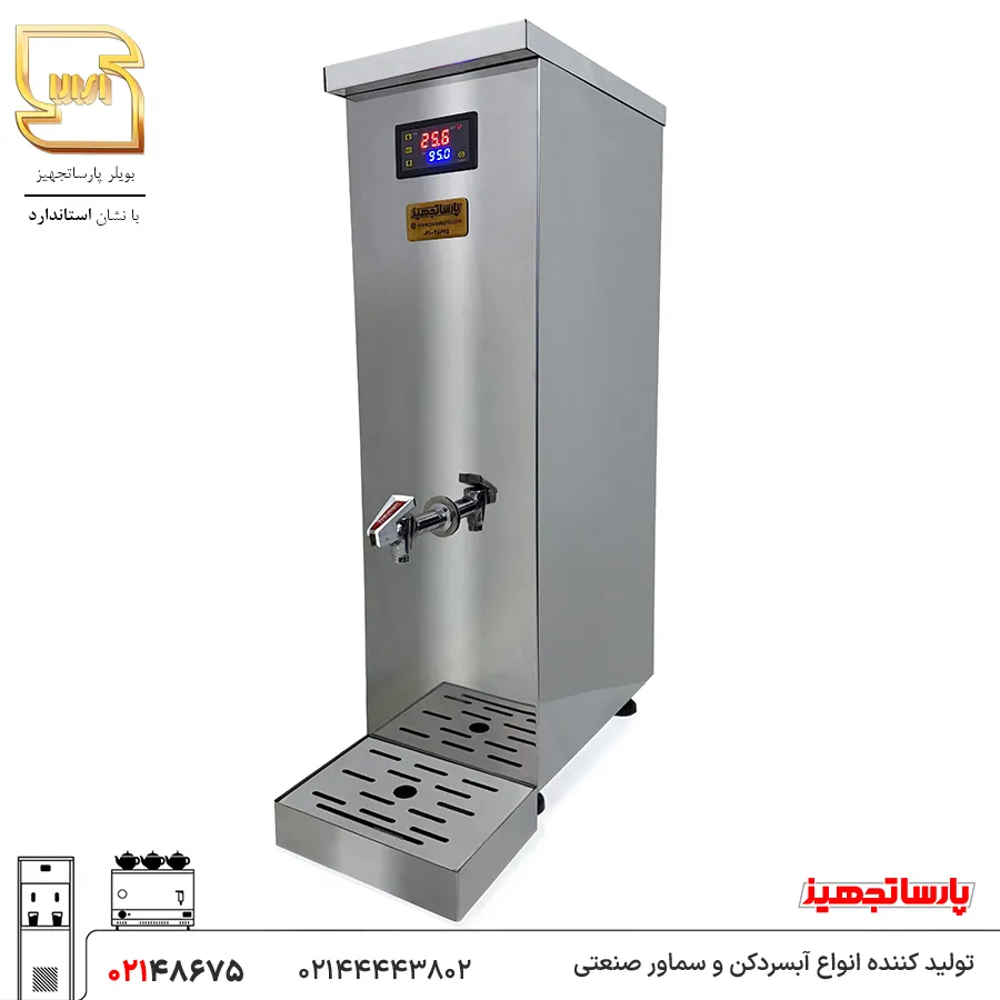 برند پارسا تجهیز با تولید بویلر آب جوش اسمارت، گارانتی و ارسال از درب کارخانه به تمام کشور یکی از بهترین انتخاب هایی است که می توانید داشته باشید. همچنین پارساتجهیز اولین و تنها برند دارای نشان استاندارد است که خرید شما را تضمین می کند. برای خرید بویلر 10 لیتری اسمارت پارساتجهیز سفارش خود را در سایت ثبت فرمایید